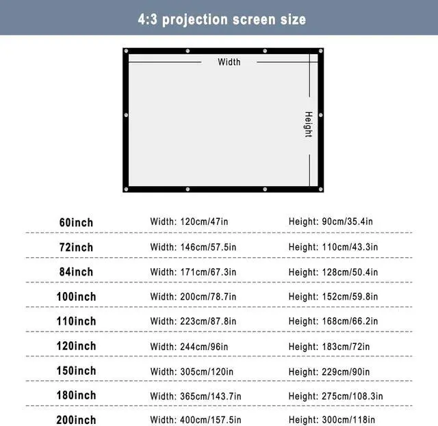 Two ratios: 16:9 rectangular ratio and 4:3 square ratio, designed for different usage needs, very suitable for home theater movies, offices, education, conference room presentations, outdoor movies, public displays, etc.