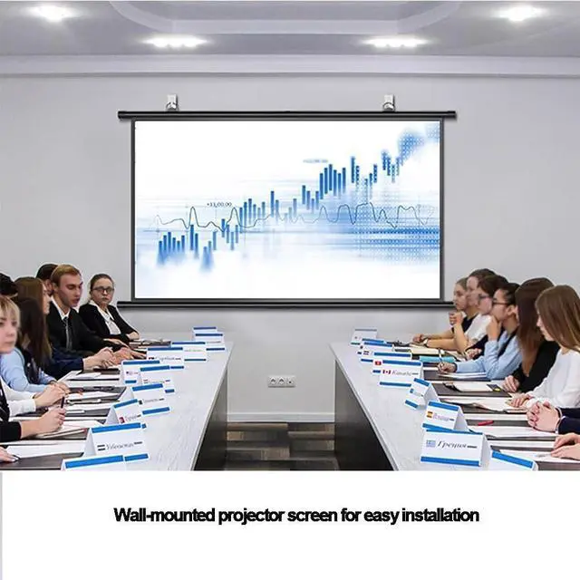Manually retractable projection screen, suitable for home theaters, living rooms, bedrooms, offices, classrooms, etc., easily rolled up to save space.