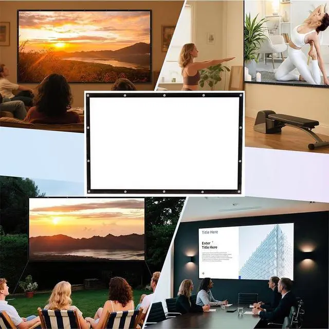 Large projection screens are available in 16:9 and 4:3 aspect ratios. The 16:9 ratio is suitable for home theaters, while 4:3 is suitable for commercial and office use.