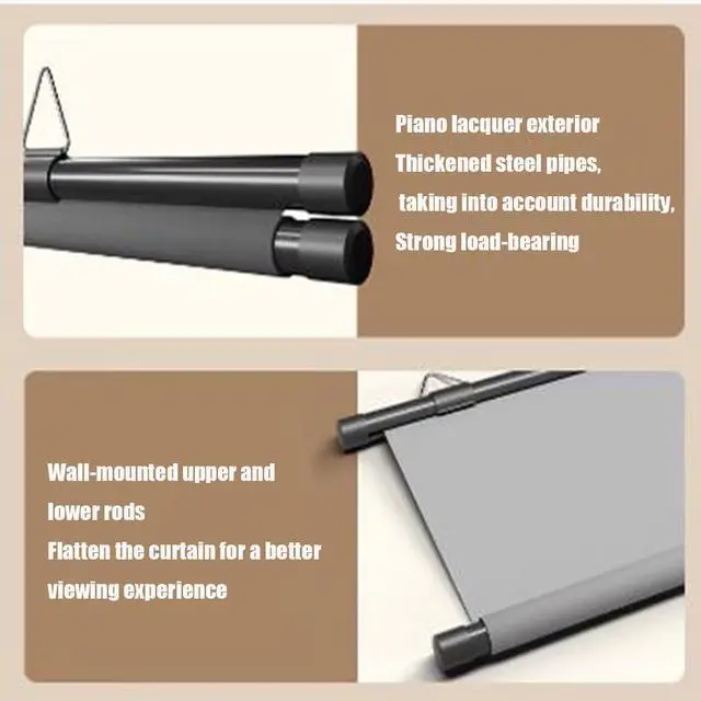 Wall-mounted projection screen: movable hanging ring, can be moved left and right to match different distances, to avoid the projection screen falling apart, black edge design with good drape to ensure smooth surface
