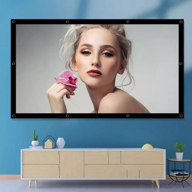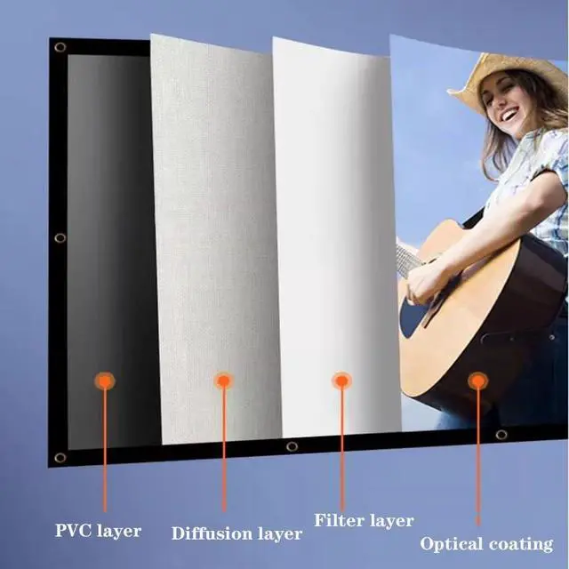 This portable projection screen, projection screen, projection movie screen, projection screen with nano optical coating is not afraid of strong light, multi-layer composite structure, reduce the drying trouble of ambient light and light, clear during the day, effectively absorb ambient light, even in light and ambient light, the image quality is still clear
