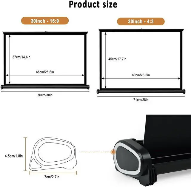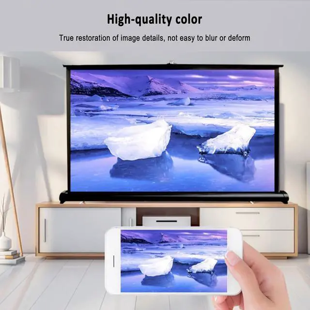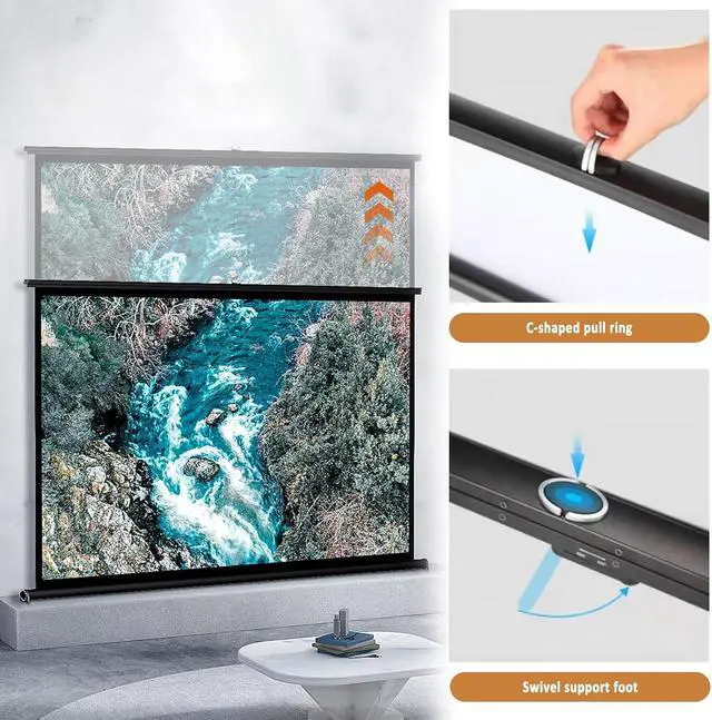 Stable and durable: Retractable Pull Up Projector Screen, The desktop projector screen with a sturdy base increases stability. The cross-scissor support rod design uses reinforced metal steel pipes for support. It is sturdy and durable, and easy to organize and store