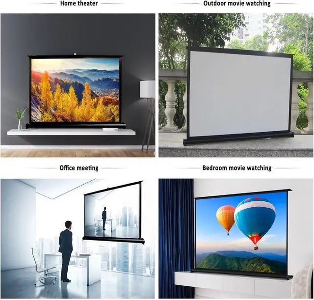 Widened base: It can be placed stably on any flat indoor or outdoor surface or table, which is very suitable for mobile meetings, video games and movies, travel, home theaters, office presentations, school meetings, backyard movie nights, etc.