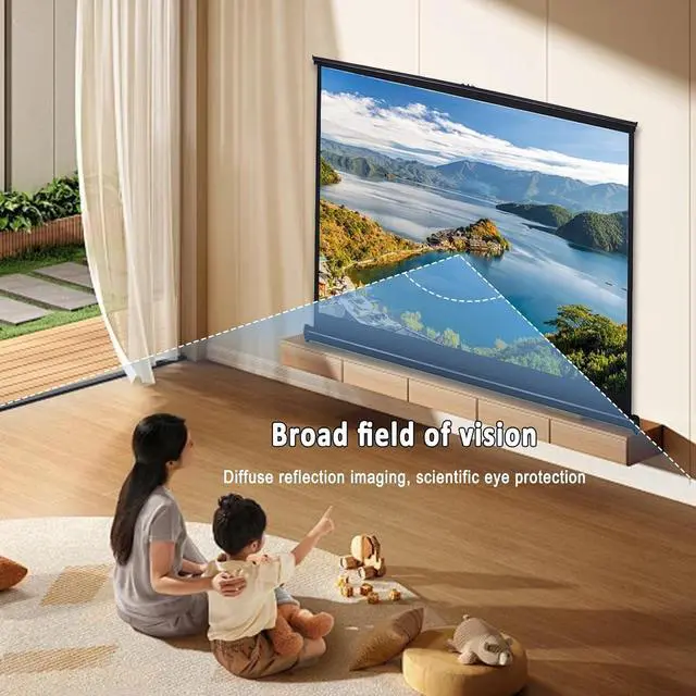 Wide range of use: 16:9 and 4:3 screen ratios are suitable for most scenes, with a wide field of view to meet the needs of multiple people watching at the same time. The C-shaped pull ring on the metal shell makes the use of the screen more convenient