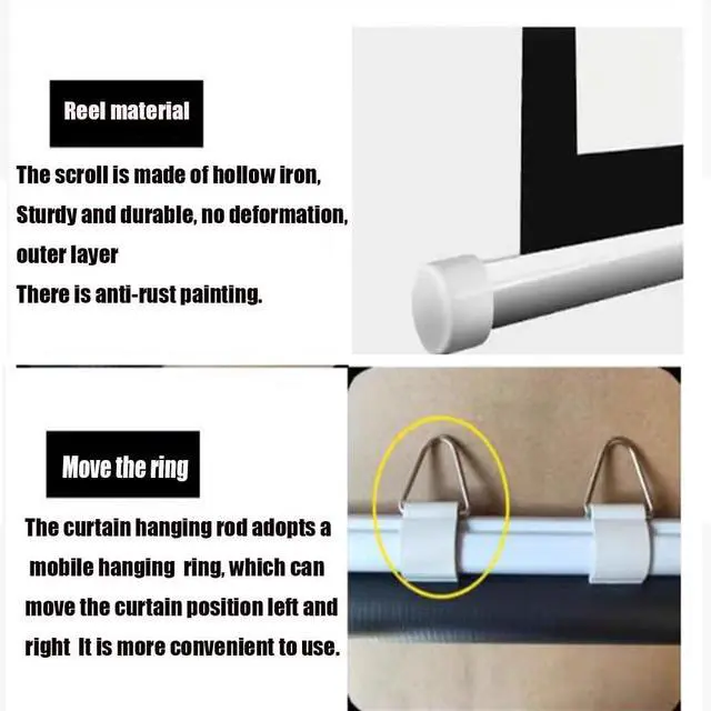 Upgraded projection screen: Add the function of moving the hanging ring to improve the flexibility of the screen, and you can move the position of the screen at will