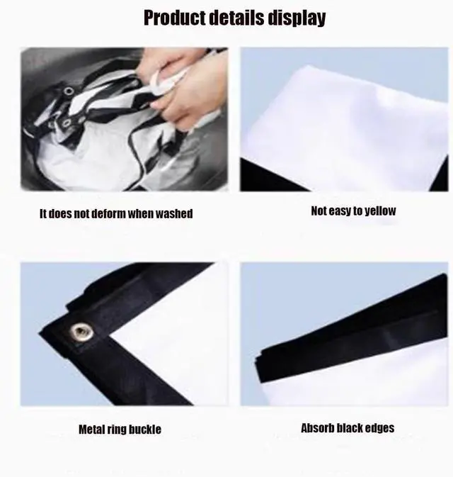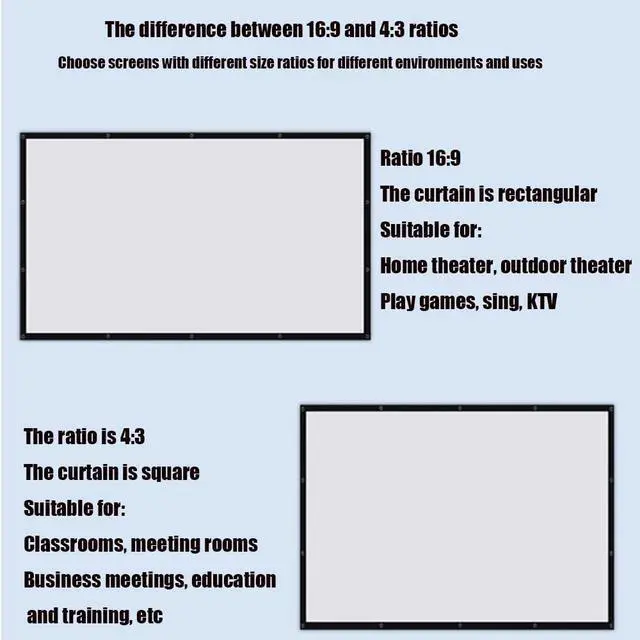 Wrinkle-free cinema screen: Portable projector screen, 4:3 format, 160° wide viewing angle, enjoy crystal clear images. The projector screen is made of polyester milk silk and is thicker than other normal screens. The cinema projector screen is foldable and wrinkle-free, giving you a better viewing experience