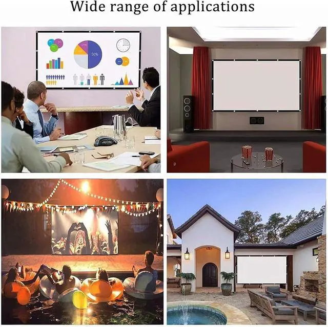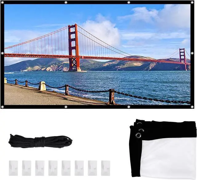 Easy to Carry: This home theatre projector screen is lightweight and portable, and installation is a breeze with the sticky hooks. This product comes with hooks, string and storage bag.