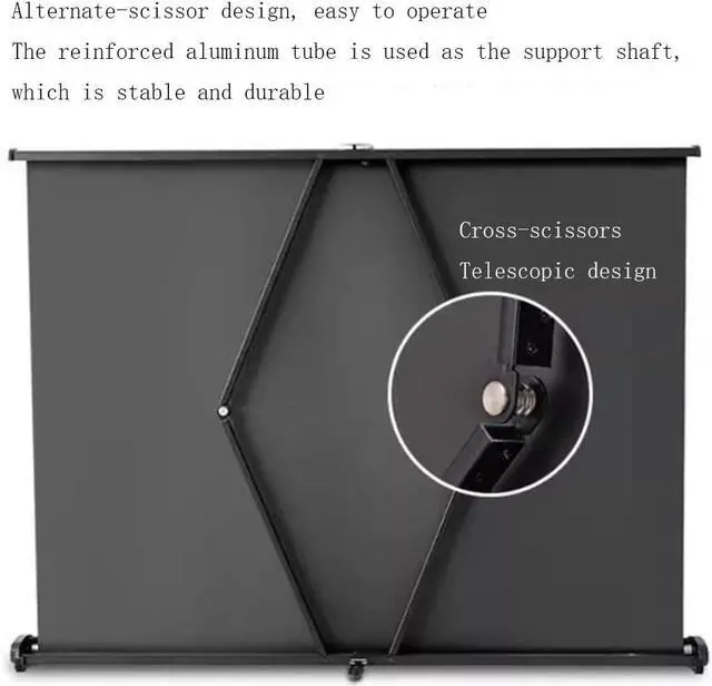 This portable desktop projection screen, small size desktop screen, easy to carry, easy to store in the trunk, romantic theater for outdoor camping, scissor design, with reinforced aluminum tube as the support shaft, simple operation, stable and durable