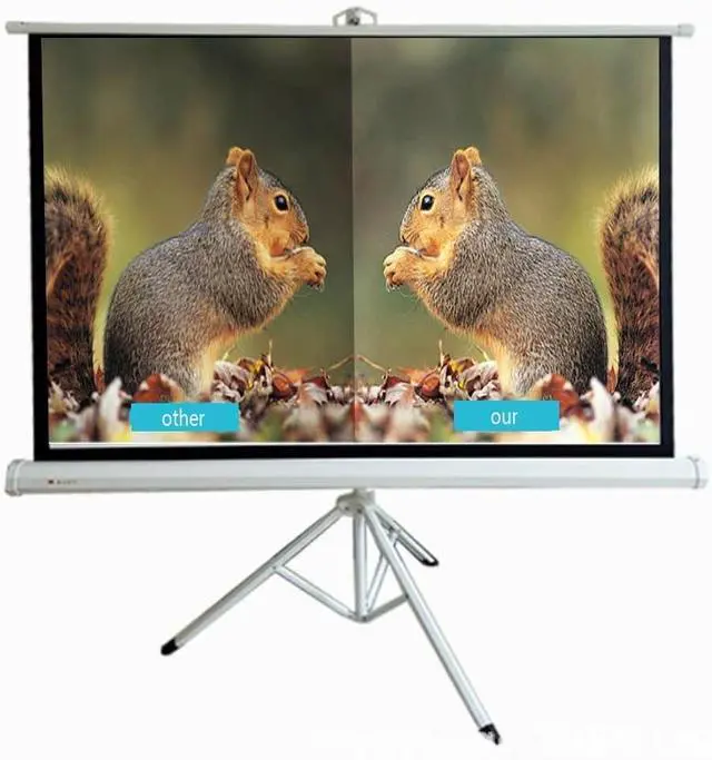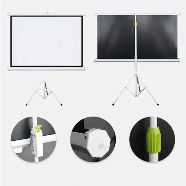 4K HD Vivid Images: The projection screen with tripod gives you vivid images and an impeccable viewing experience in 16:9/4:3 4K Ultra HD resolution. The white fiberglass screen has excellent image reproduction due to its wrinkle-free surface. The four black side bezels are designed to improve image contrast