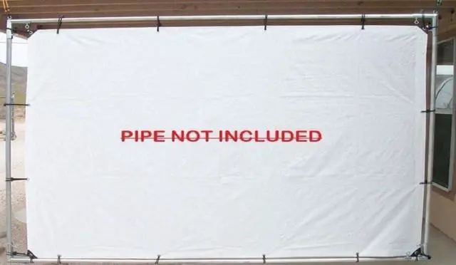 "Kit Includes: 10 x 12 White Heavy Duty Poly Tarp (Finished Size Approximately 96 x 116), 3/4"" Heavy Duty (Galvanized Steel) Fittings to connect your pipe to make the frame, Ball Bungees to attach the tarp to the pipe and rope to hang the kit"