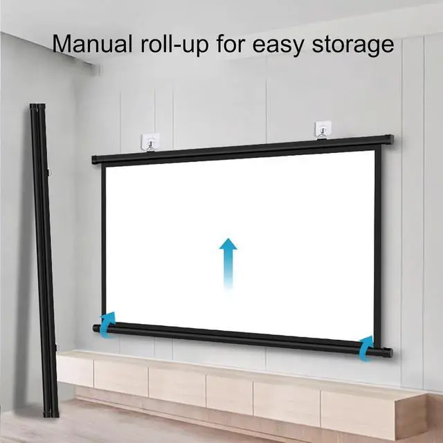 PORTABILITY: The manual cinema screen is easy to carry and store, lightweight, easy to roll up, and won't take up extra space when stored. Perfect for indoor and outdoor use.
