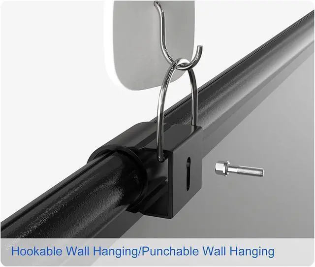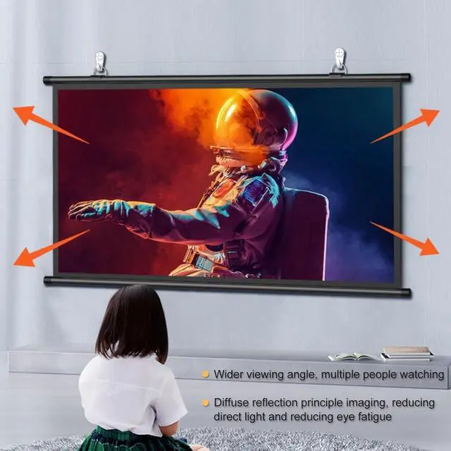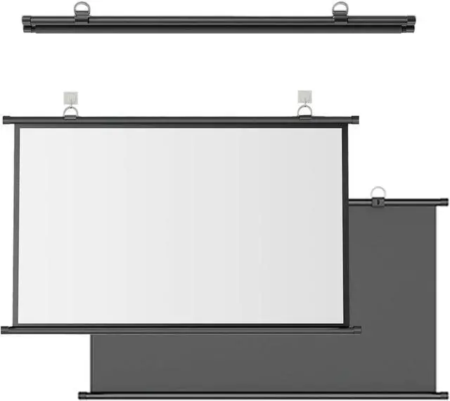 Easy Installation--The wall mounted projection screen is designed with a black frame and hanging holes, use the hook to hang the screen on the wall to complete the installation, simple operation. When not in use, the screen can be rolled up and stored easily.