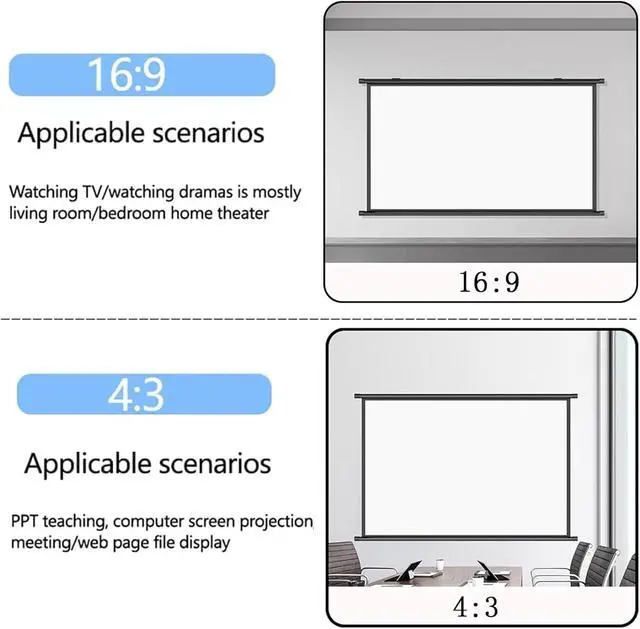 Size--Diagonal size: 60/72 inches, Ratio: 4:3 and 16:9 optional, the projector screen can project bright, colourful 4K HD high-resolution images, providing a stunning visual experience.