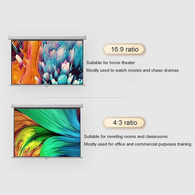 Height Adjustable: Simply pull the screen down to the desired height and gently release to adjust the height. The pull-down projector screen captures clear/vivid images and videos, perfect for home theater/movie screenings.