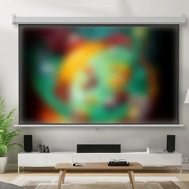 Manual Screen Control: This pull-down movie screen ceiling/wall mount projector screen is fully retractable and has a self-locking mechanism, so you just roll/pull the screen down and gently let go, it will automatically lock into place.