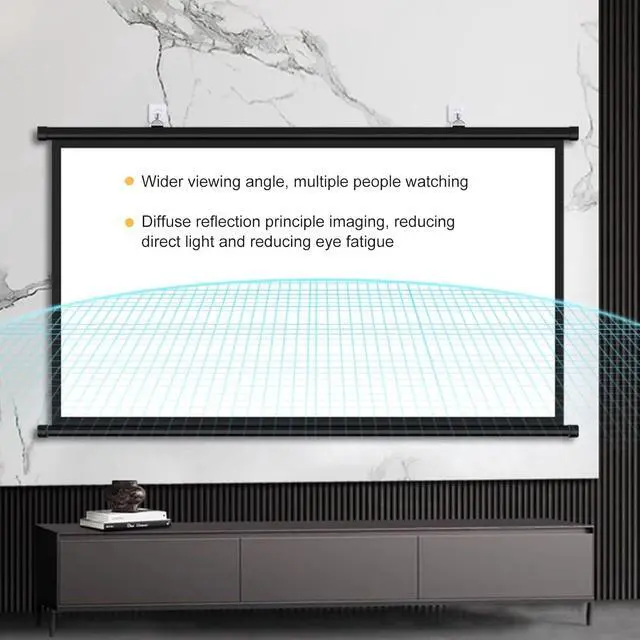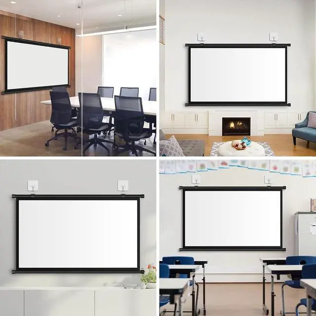 [Easy Installation and Adjustment] This projector screen can be easily installed. It can be done by hanging the screen on the wall using the hook, which is simple to operate. You can adjust the height to fit the viewer's line of sight.