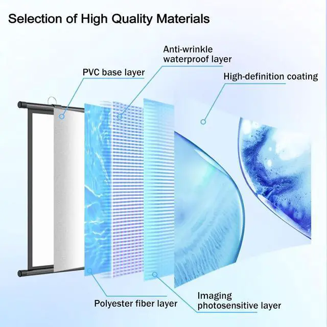 [Eye-friendly Image] The surface of the projection screen has a matte finish that evenly diffuses the light from the projector. At the same time, the wide viewing angle allows you to get a natural, soft image from any angle, even for long periods of time, without causing eye fatigue.