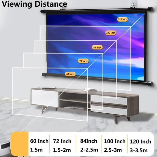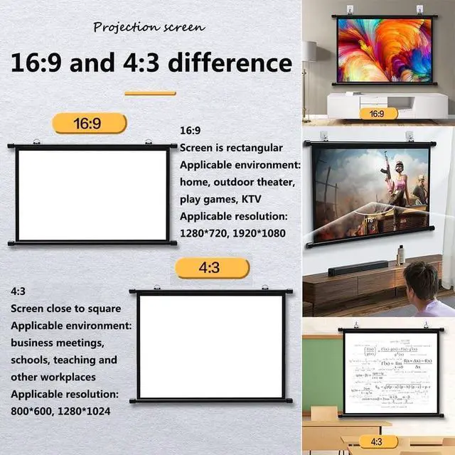 Our manual projection screens are made of high-quality white fiberglass material and offer a wide viewing angle for optimal viewing and the ultimate home theater experience. This projection screen can display movie, sport games, photos, music video, games, etc, it make your life more fun! Or you can present your company graphics and data in the office.