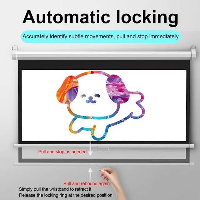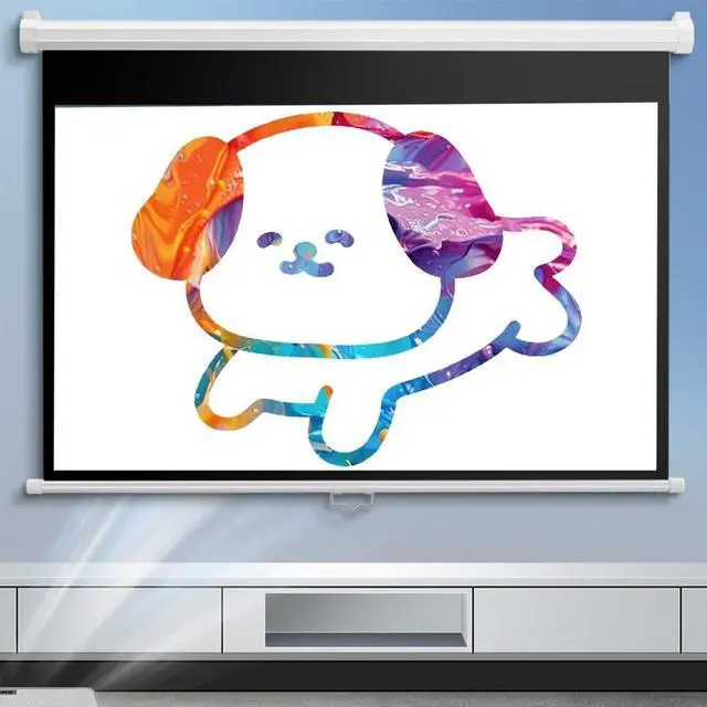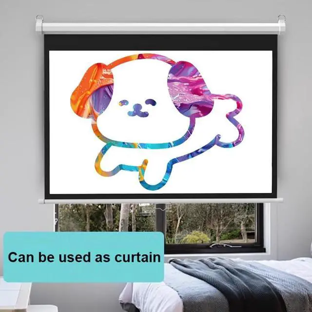 Professional manual projection screen, 60/72 inches, format: 4:3/16:9, can be installed on the wall or ceiling. There is a 3 cm black border, which increases the contrast and makes it easier to adjust the picture. The back of the canvas is black and opaque. The projected light remains bright and has strong colors.