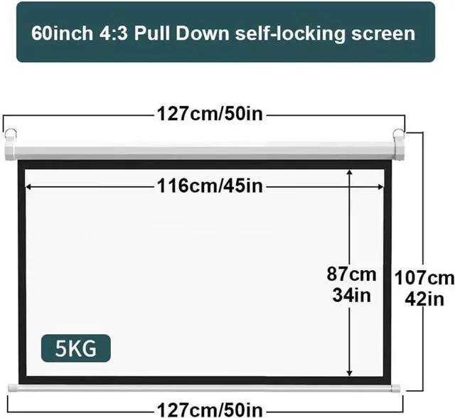Product weight: 60inch-4:3: 5kg, 60inch-16:9: 5.5kg, 72inch-4:3: 5.8kg, 72inch-16:9: 6.3kg
