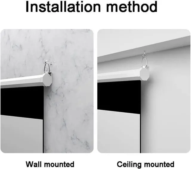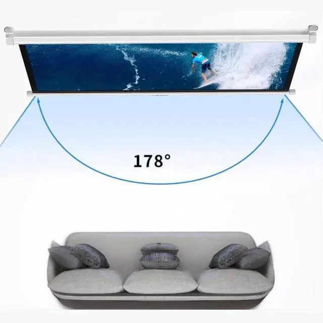 Manually drop -down projection screen with an automatic lock -up lift system. The suitable length can be installed on the wall or ceiling. You can enjoy the cinema -level perception at home. It supports 3D 4K. It is a good helper for family gatherings and parties.