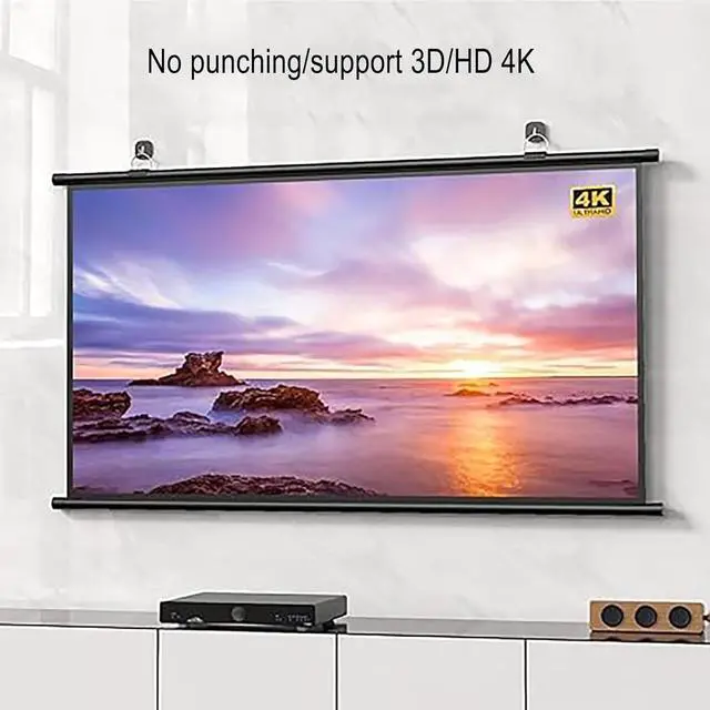 With the projection screen, you can watch presentations, sports games, movies or TV shows almost anywhere. It can be easily hung on the wall without causing any burden in the office or living room.