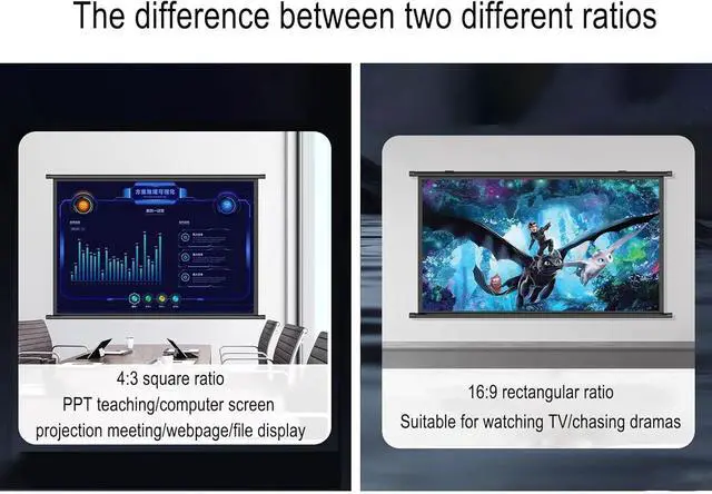 16:9 screen ratio is rectangular, applicable environment: home, outdoor theater, playing games, singing, KTV