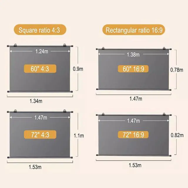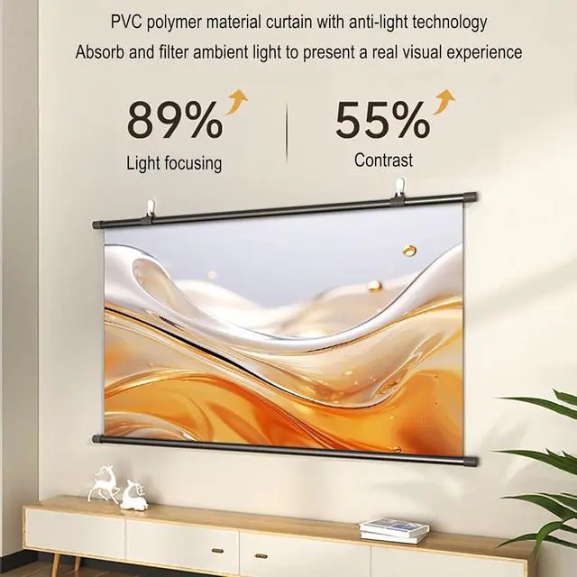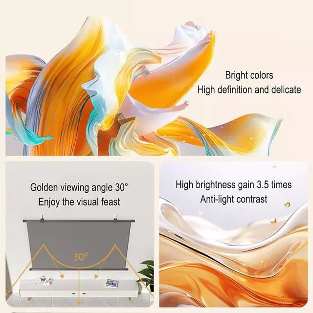 Projection screen, projector curtain, projector movie screen HD projection screen, lightweight, foldable, easy to carry and scalable design provides a convenient projection screen wherever needed.