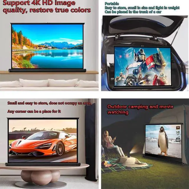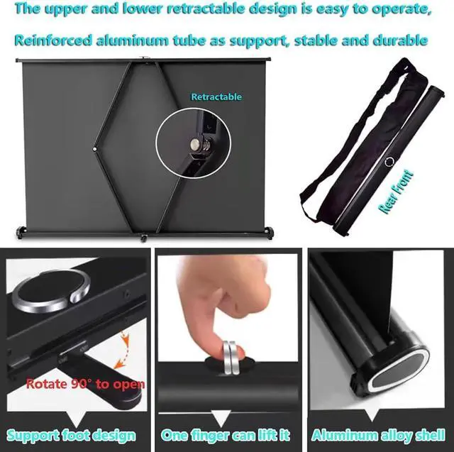 • Manual Retractable: The desktop movie screen is equipped with a quick-pull system, which can pull the screen up and down and play freely; Thickened aluminum tube bracket for stability and durability