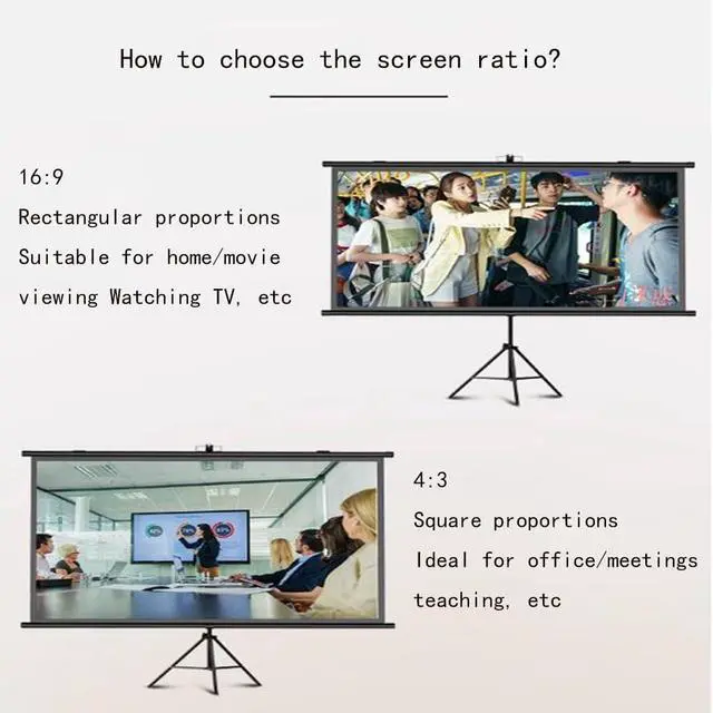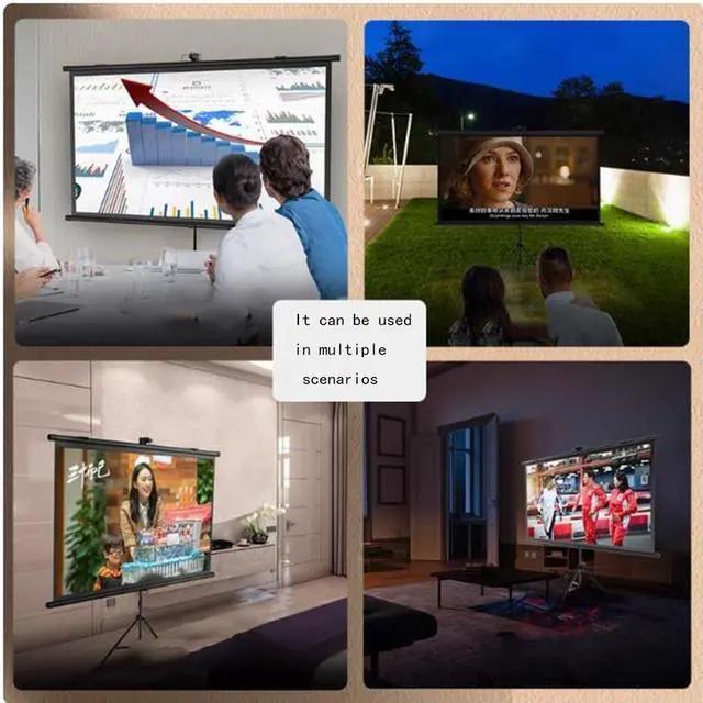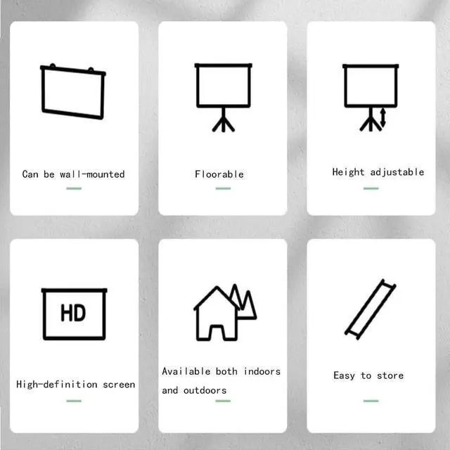 The projection screen is made of fiberglass material with a gain value of up to 1.1, which can enhance the brightness and contrast of the projected image. The screen is thick and hard, no wrinkles, to ensure the flatness of the projection screen, the black backing can effectively prevent light transmission and reflection, resist ambient light, and provide better visual effects, and the sturdy triangular adjustable bracket provides greater stability; Neatly placed in a tote bag for easy transport or storage