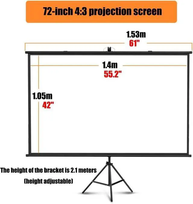This portable HD projection screen is perfect for watching movies outdoors or indoors. Setup is quick, the screen rolls up for storage, and the back of the screen is black so light doesn't shine in from the back. Screen quality is excellent. Image quality is excellent. Excellent stability. Enhance your home theater experience.Product name: Projector ScreenProduct material: PVCProduct type: 1. wall-mounted installation2. Support bracket projectionProduct size: 60 inches/72 inchesProduct ratio: 4:3/16:9Package includes: 1× projection screens with standNotice:1. Due to manual measurement, the size error is 1-2 cm.2. Before purchasing, please confirm whether the selected size meets your needs.