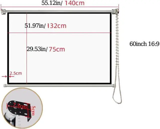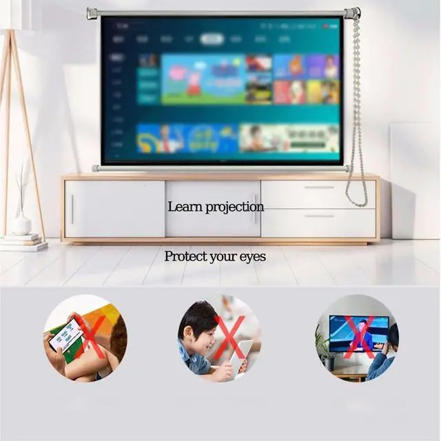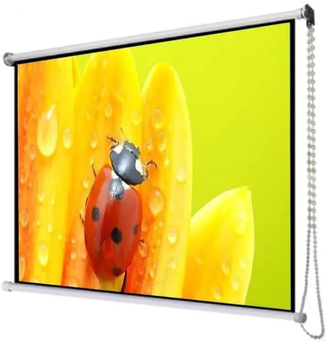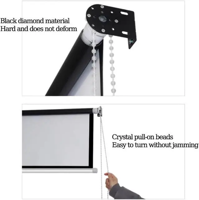 HD movie projection screen with a bead chain design, manually retractable. Pull down to use, and it stops at any point. Suitable for wall mounting or ceiling suspension.