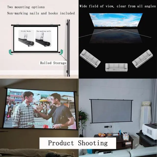 Package includes: projection screen x1, hook x2, traceless nail x2