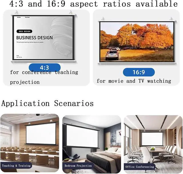 The projection screen is made of white fiberglass fabric, which can project clearer and brighter images, with high-definition coating, excellent workmanship, and flexible fibers that will not curl or wrinkle.