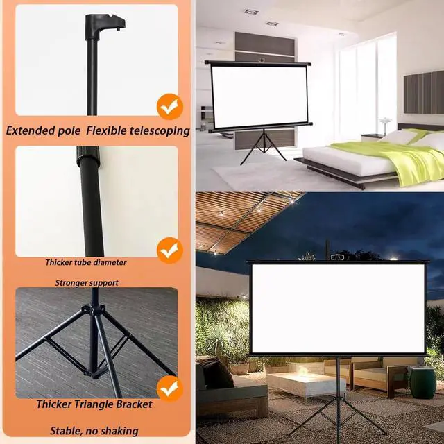 • Wide application: Projector screen with stand, perfect for home theater, backyard, school, office, wedding, education, conference room, public display, outdoor movie. Can also be used for document presentations and other displays.