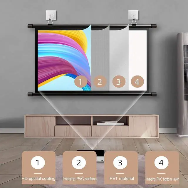 With the projection screen, you can watch presentations, sports games, movies or TV shows almost anywhere. It can be easily hung on the wall without causing any burden in the office or living room.