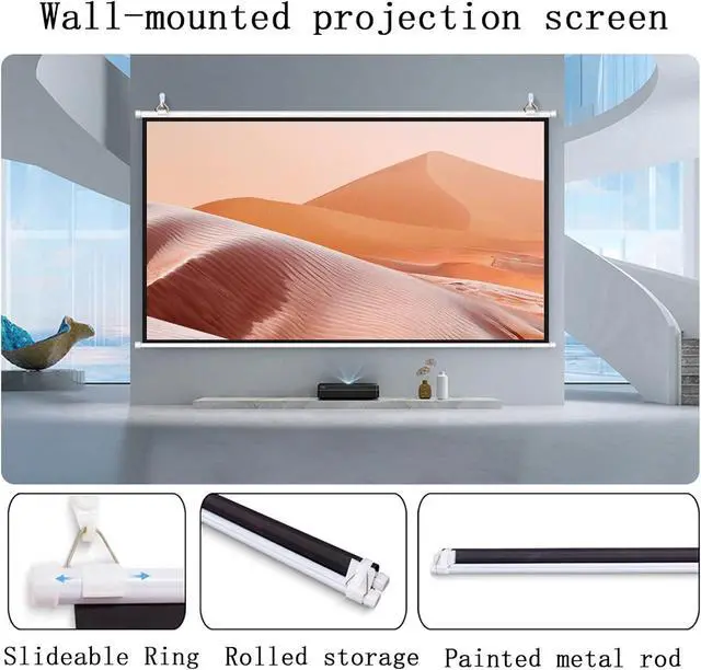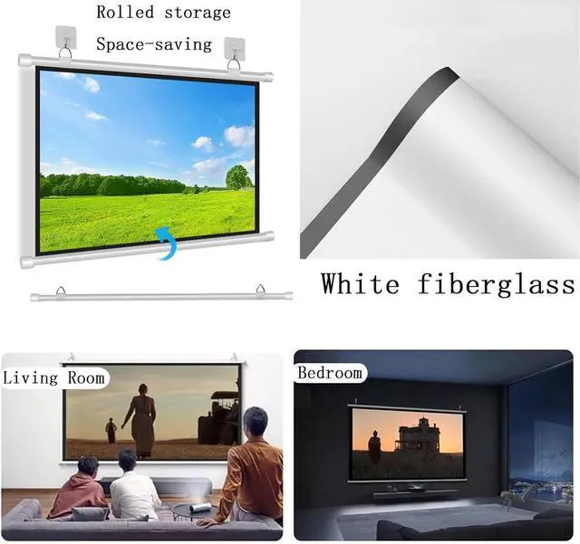 The manual projection screen is made of high-quality white fiberglass material, with realistic colors, high-definition visual experience, and a wide viewing angle. Even if you want to invite neighbors or friends to watch a movie together, it will not look crowded.