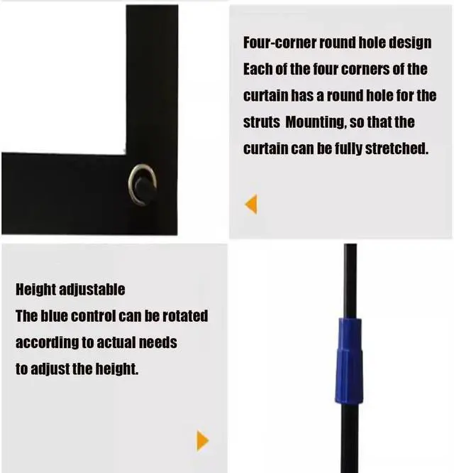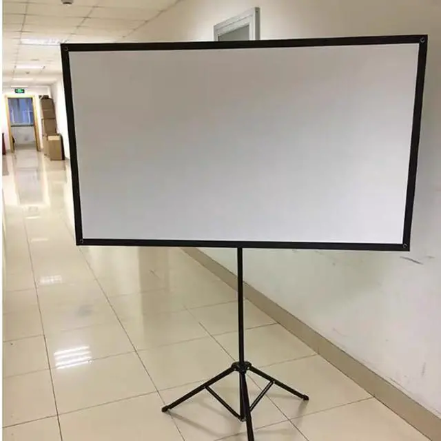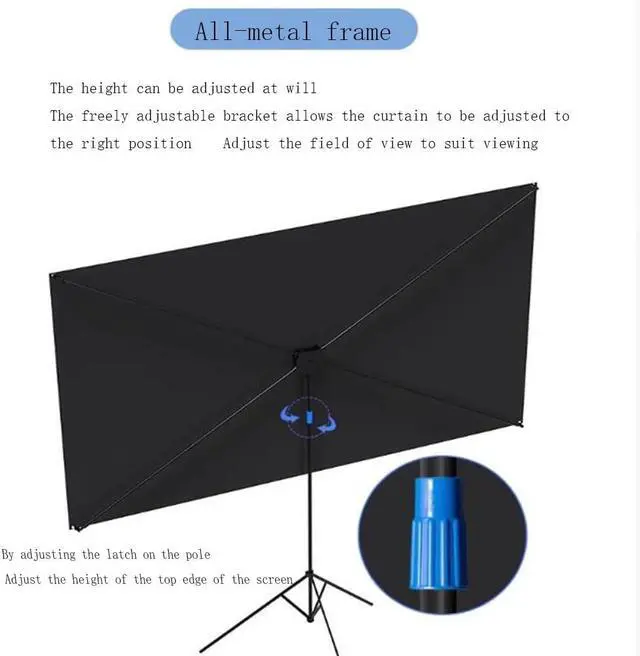 The projection screen is made of white glass fiber material, fine process treatment, wear-resistant, not easy to curl, white glass fiber material increases by 1.1, the color is restored to the truth, the hardness of glass fiber in the coating increases, tripod design, strong stability, strong standing ability, reinforced bracket design, support balance, free retraction, stable bracket, provide you with safety guarantee in various scene demonstrations, all-metal frame, height can be adjusted at will, free bracket can adjust the screen to a suitable position, adjust the field of view