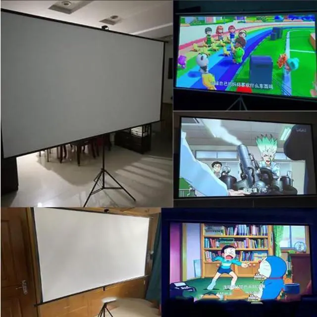 This large projector screen supports 4K and Ultra HD resolutions for more detail and richer colors for an immersive visual experience, with 1.1 gain, a standard black backing that eliminates light penetration. The black borders on all four sides enhance the contrast of the picture, and the diffuse projection of the movie screen effectively reduces direct light sources, reduces blue light, and protects the eyes from fatigue