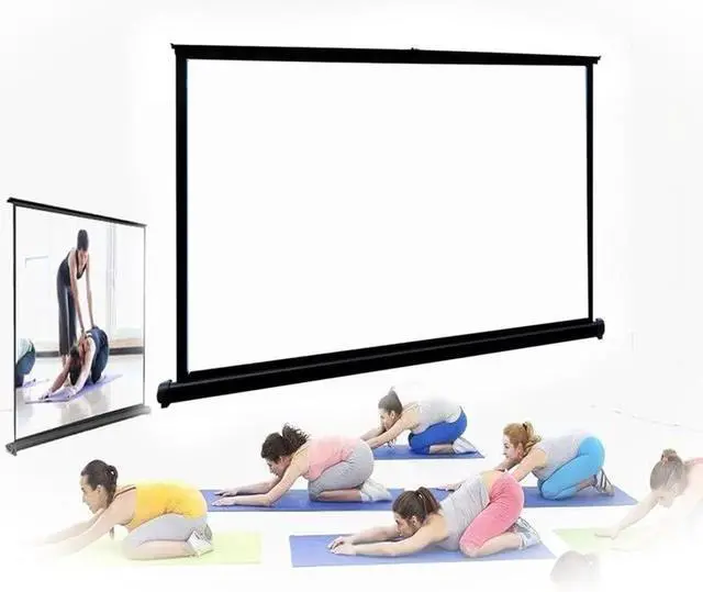 The lightweight, portable, retractable design allows for convenient use of the projector screen when needed. A black mask border provides optimal image focus and alignment. It is perfect for homes, offices, or classrooms.