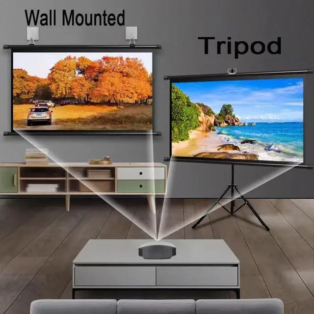 • The projector screen provides dual design. The multi -functional portable projector screen can be installed on the wall -mounted. It can also be fixed with a bracket. It is very convenient to carry. The bracket we bring is very strong and durable.