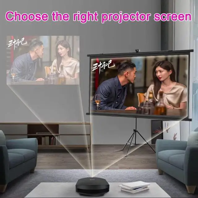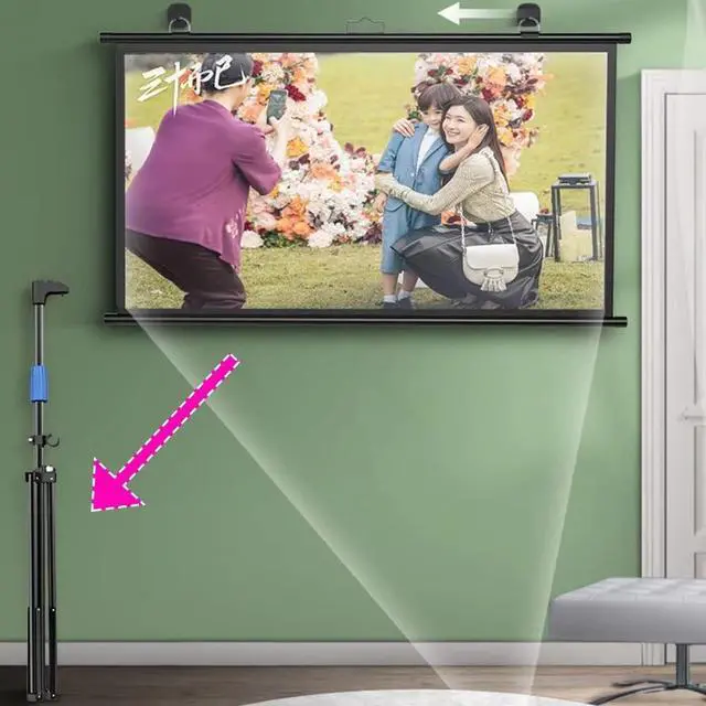 Manual drop -down projection screen with brackets and adjustable lengths. You can install it on the wall or ceiling. You can enjoy the cinema -level view at home. It supports 3D 4K. It is a good helper for family gatherings and parties.