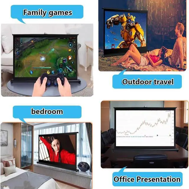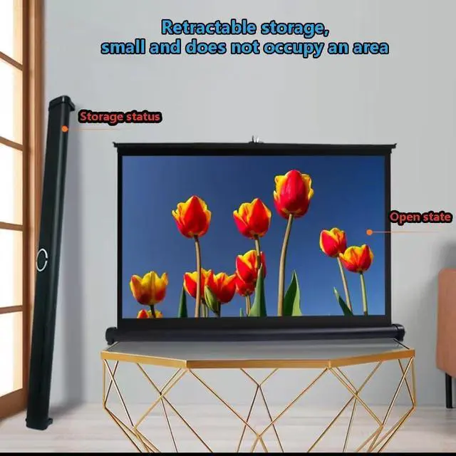 A retractable projection screen that can stand on any flat floor or table for the ultimate home theater experience