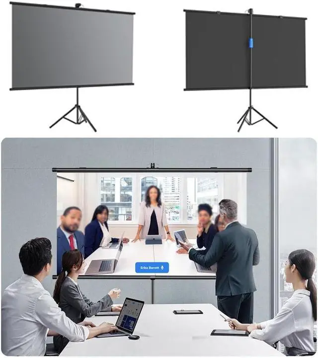 Outdoor projection screen with tripod bracket, portable and easy to support, positive projection high gain light resistance, comfortable outdoor viewing experience