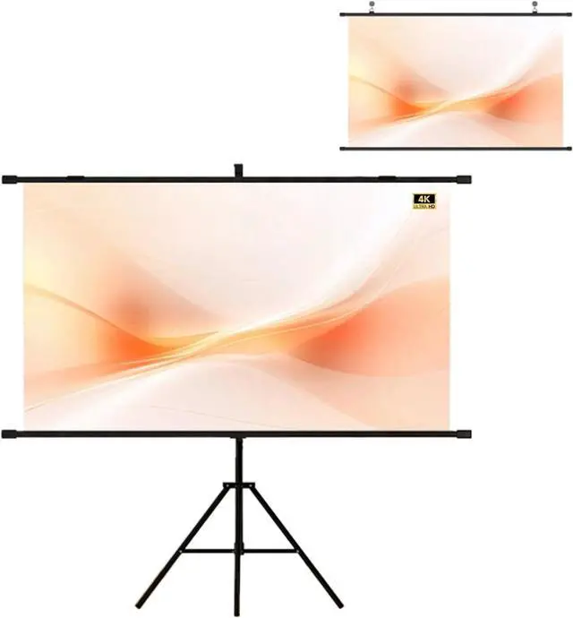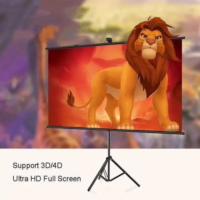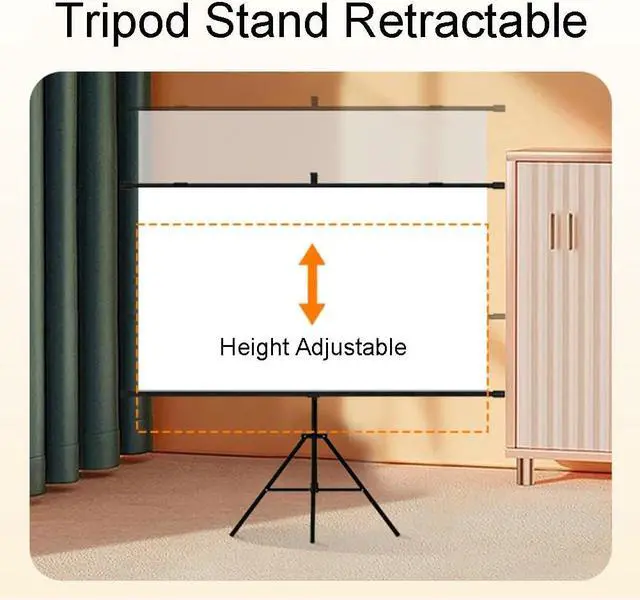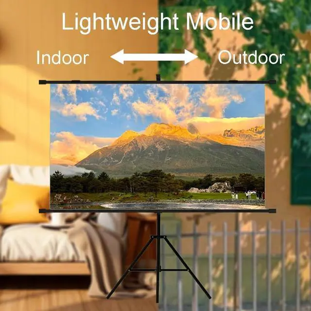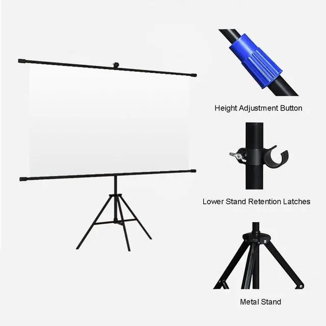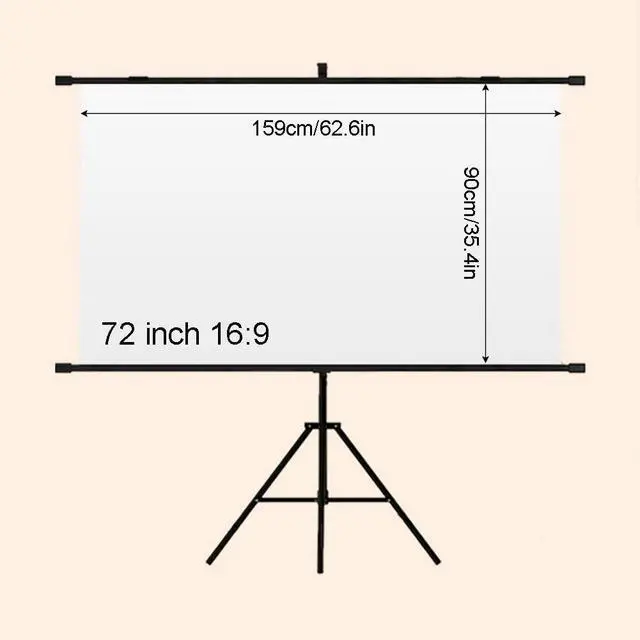 Projection screen with triangular bracket is a portable device equipped with a solid triangular support structure, easy to quickly assemble, flexible height adjustment, suitable for indoor and outdoor, can present a clear projection screen.