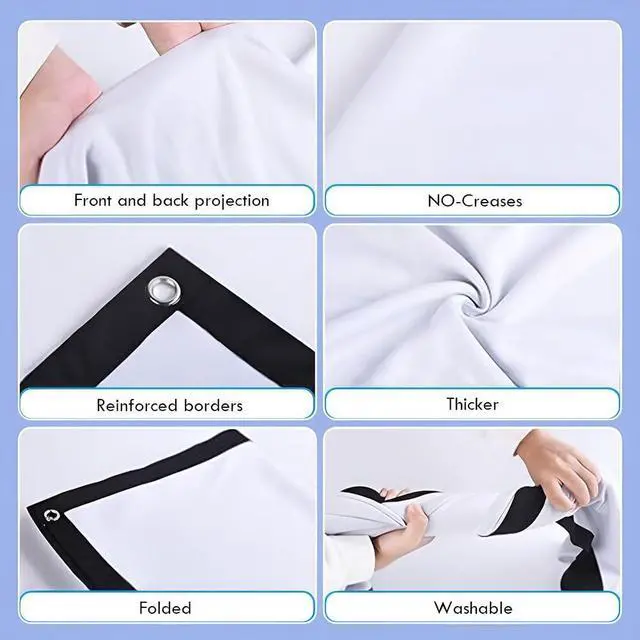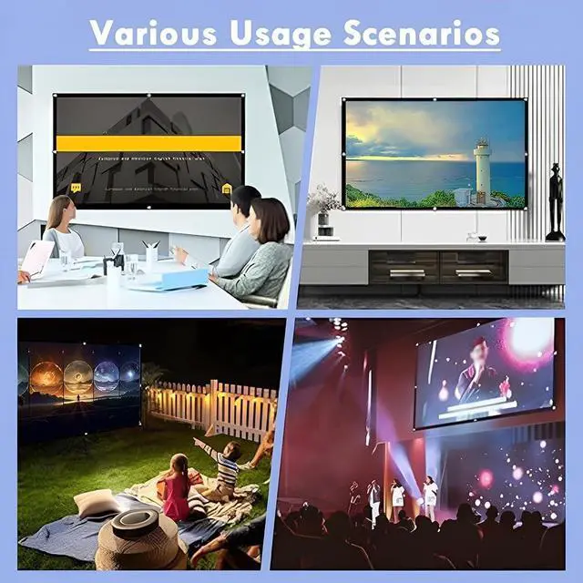The projector screen supports multiple display ratios and has a viewing angle of up to 160°, so you can enjoy crystal-clear images no matter which type of projector you use. Immersive movie nights will create unforgettable memories for your family. It's for any setting, from home theaters to outdoor parties to office presentations.