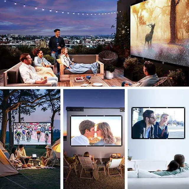 The portable and foldable projection screen is easy to carry and install. It is ideal for outdoor camping, home theaters, and other scenarios. It evenly diffuses projected light, providing you with the best visual experience in terms of image quality and color reproduction.