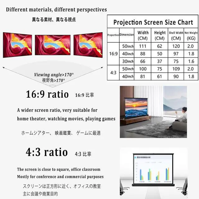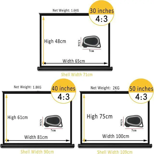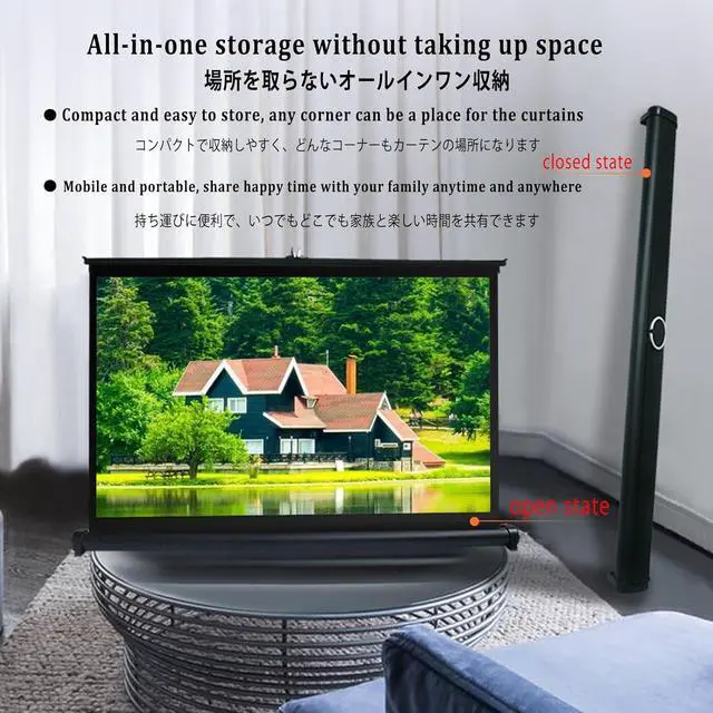 Convenient desktop projection screen is easy and convenient to operate, integrated storage design saves space and can be used indoors and outdoors.