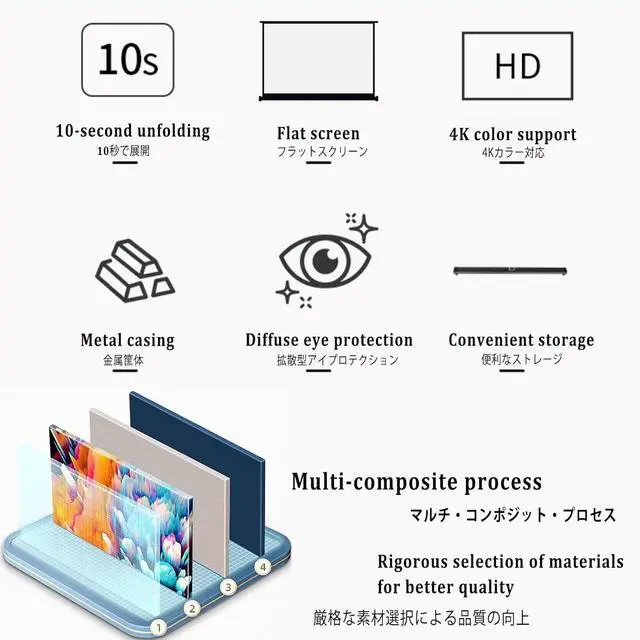 Independent convenient desktop projection screen is sturdy and safe, durable, with diffuse reflection technology technology, color gain 2.2 times, clear picture, bright colors, support 4K HD projection, wish you enjoy the ultimate beautiful viewing experience, small size, light weight, and comes with a storage bag, convenient for you to carry and use storage.