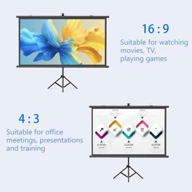 Use scenario: 16:9 format is suitable for watching movies, such as home theater, sports events, party games, etc.; 4:3 format is suitable for commercial use, such as office meetings, schools, public displays, training, etc.